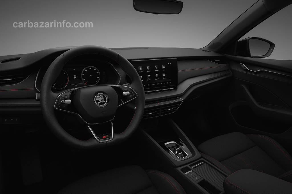 - बड़ा टचस्क्रीन, premium upholstery, स्पोर्टी सीट्स और कैबिन-स्पेस आरामदेह है; स्कोडा की Simply Clever सुविधाएँ भी मौजूद हैं।