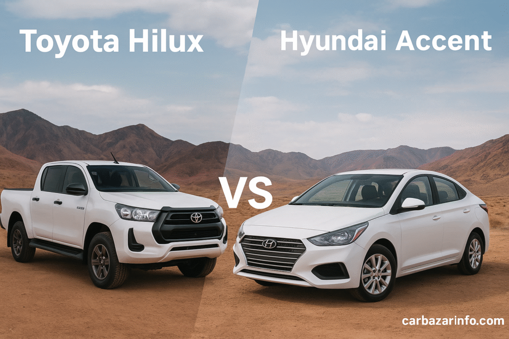 Toyota Hilux बनाम Hyundai Accent – इंजन, माइलेज, डिजाइन, सेफ्टी और कीमत का पूरा कंपेरिजन। जानिए कौन सी कार Sudan के लिए बेस्ट है