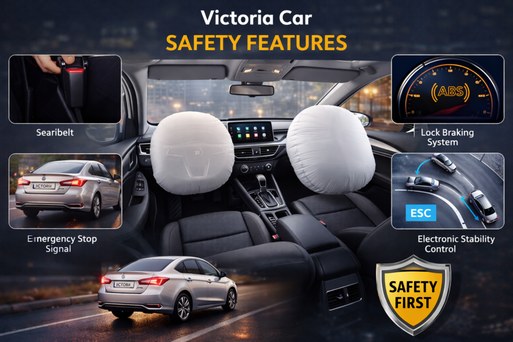 कार लेते समय लोग बहुत चीज़ें देखते हैं, लेकिन सबसे बड़ी बात safety ही होती है। ध्यान देने वाली बात यह है कि एक छोटी सी लापरवाही भी बड़ा नुकसान कर सकती है, इसलिए car में सही safety features होना जरूरी है। Victoria Car में basic safety का अच्छा ध्यान रखा गया है, जैसे airbags, ABS और मजबूत body structure। ये features accident के समय impact को कम करने में मदद करते हैं। यही वजह है कि driver और साथ बैठी family को थोड़ा extra protection मिलता है।