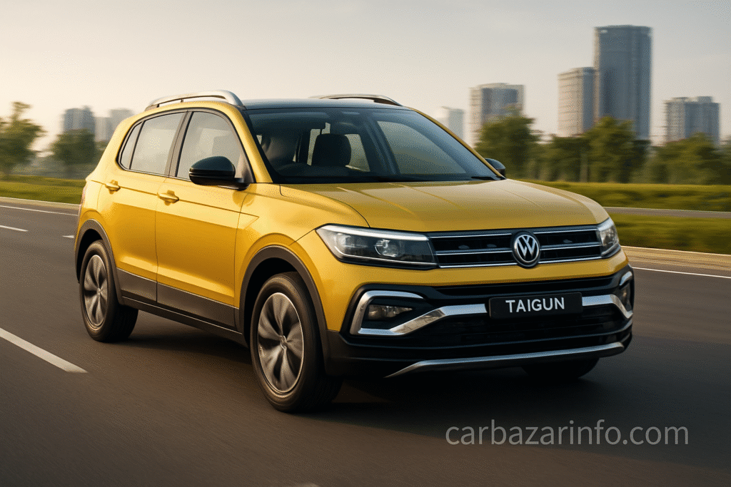 Taigun के वेरिएंट आमतौर पर Comfortline, Highline, Highline Plus, GT Line और Topline आदि में मिलते हैं। Ex‑showroom प्राइस इंडिया में करीब ₹11.4 Lakh से लेकर ₹19.8 Lakh तक दिखती है (वेरिएंट और पावरट्रेन पर निर्भर)।